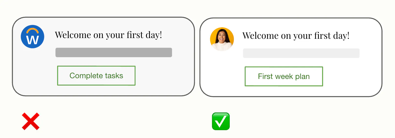 Companies like Carta or Lucid avoid sending system notifications to notify new hires and managers of onboarding tasks or information instead their onboarding coordinators DM them in Slack - at scale and automated!