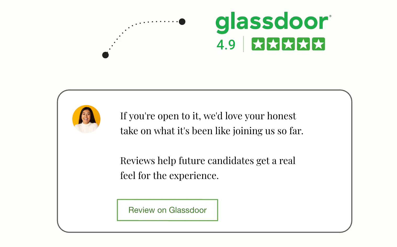 Around the two-month mark, Truecar sends new hires a friendly Slack message inviting them (totally optional) to share their experience on Glassdoor. By then they’ve seen enough to have a real perspective, but they still remember what the first weeks felt like.