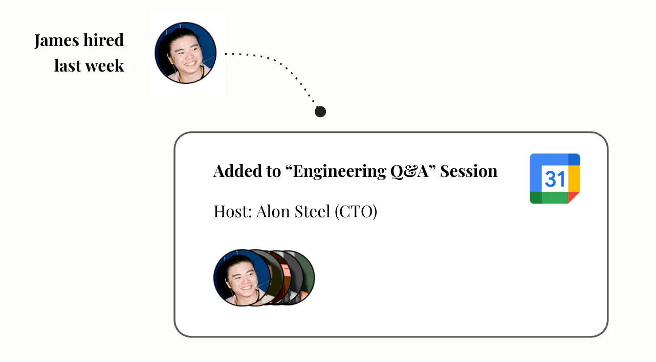 To avoid the administrative burden of having to remember to add new hires to a calendar invitation, this only scales when you automate the process.