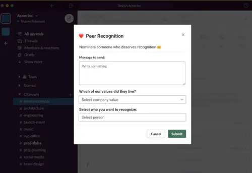 Many modern People Teams ensure that values feature in common people practices where people’s behaviors are under the spotlight, including for example during recurring performance reviews and as part of high volume practices like peer-to-peer recognition.