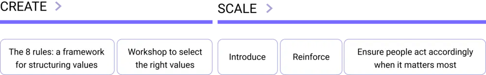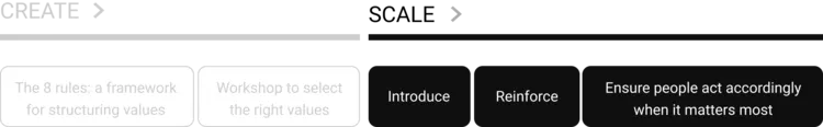 In Scale, we will first cover more common HR practices to “introduce” and “reinforce” values and dive deeper in newer techniques used by people teams to “ensure people act accordingly with values especially at times it matters most”