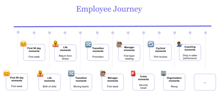 Forward thinking People Teams are mapping these moments out as part of the Employee Journey - a visual representation of an employee's experiences in your company across all important moments.