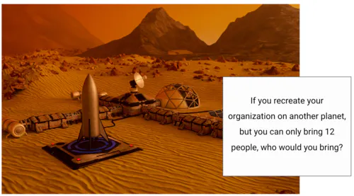 Start the process with the founders, CEOs and perhaps one or two trusted leaders. Ask this group: If we were to recreate our company on another planet, but could only bring 12 people, who would you bring? It’s very likely that the chosen people are strong performers and strong cultural advocates.