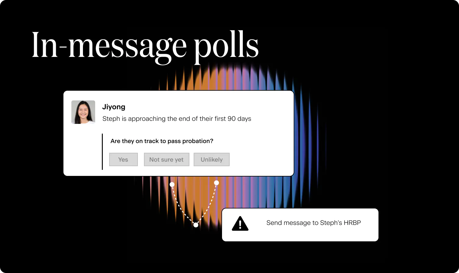 ⏱️ 30–60–90 days (HRIS) → Send polls or check-ins (Slack)